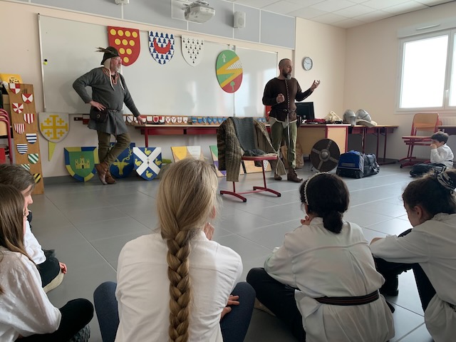 La quête du Graal peut commencer : tous les écuyers et écuyères de CM2B viennent d’être adoubé(e)s chevaliers et chevaleresses par Lord Julian de Kervalet.