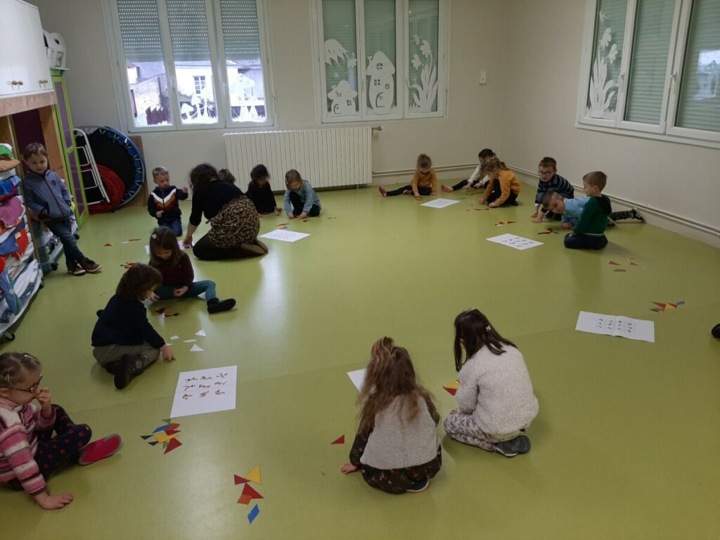 Avec les PS et les MS nous sommes allés à la salle Equinoxe pour voir le spectacle Karl. Un spectacle avec un tangram lors duquel les formes prenaient vie pour nous raconter le voyage de Karl, le carré. Un atelier a été mené avec les moyens à la rentrée de janvier pour leur permettre d’expérimenter la création de formes à l’aide du tangram.