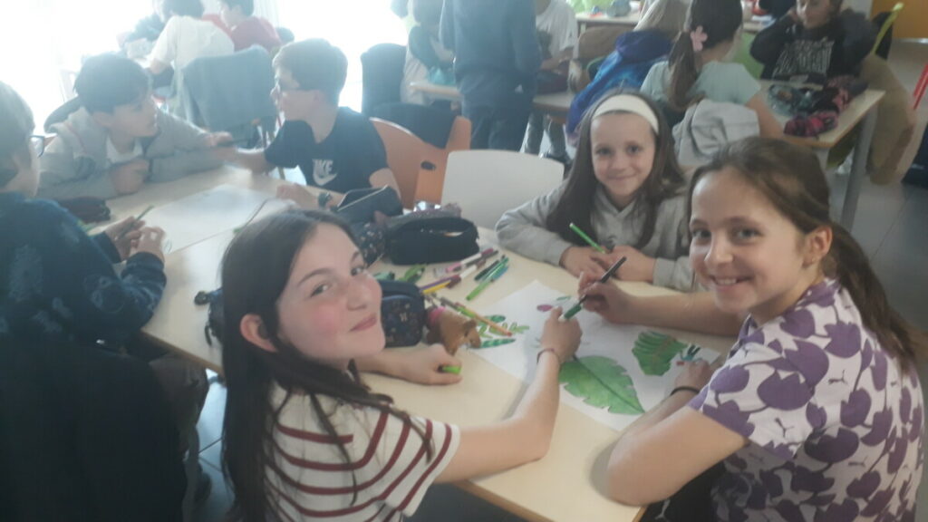 Jeudi 21 mars, les élèves de CM1 et de CM2 se sont mélangés pour un beau moment d’art. Ils ont commencé à travailler sur le grand projet de fresque « Le végétal s’invite sur notre cour ». De belles couleurs, des feuilles, des silhouettes inspirées de Jean-François Fourretout… les élèves ont bien apprécié ce moment d’art avec les 5 classes. En mai, l’artiste peintre Cyrille Boyer (de Cordemais) viendra nous aider à réaliser une grande fresque sur le mur de la cour. Les enfants ont hâte. Pour le moment, vous pouvez admirer leurs premières ébauches sur les murs du cycle 3, dans l’escalier.