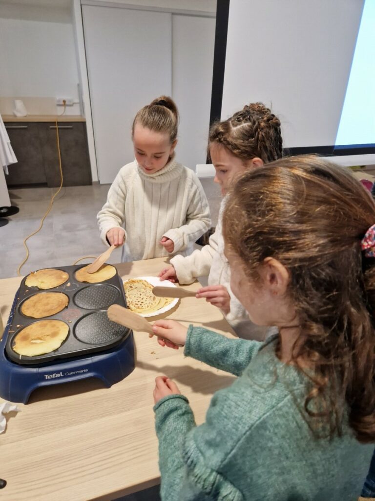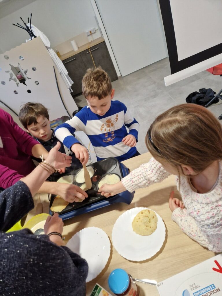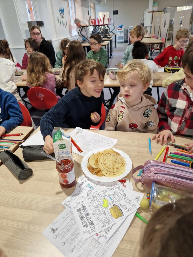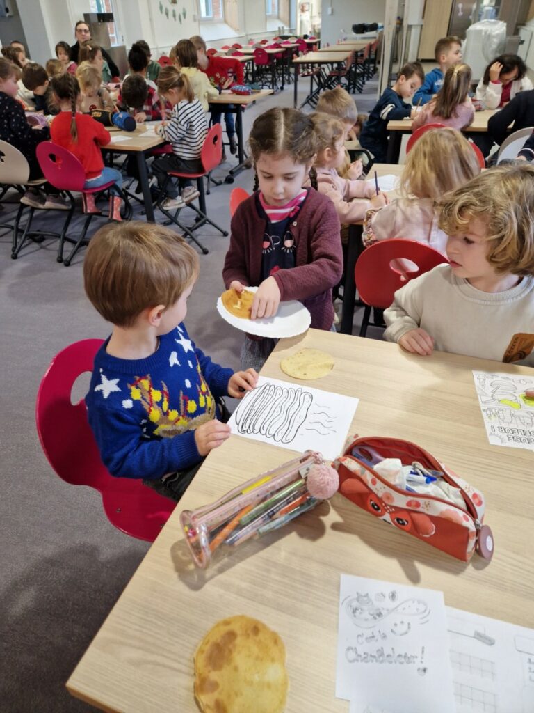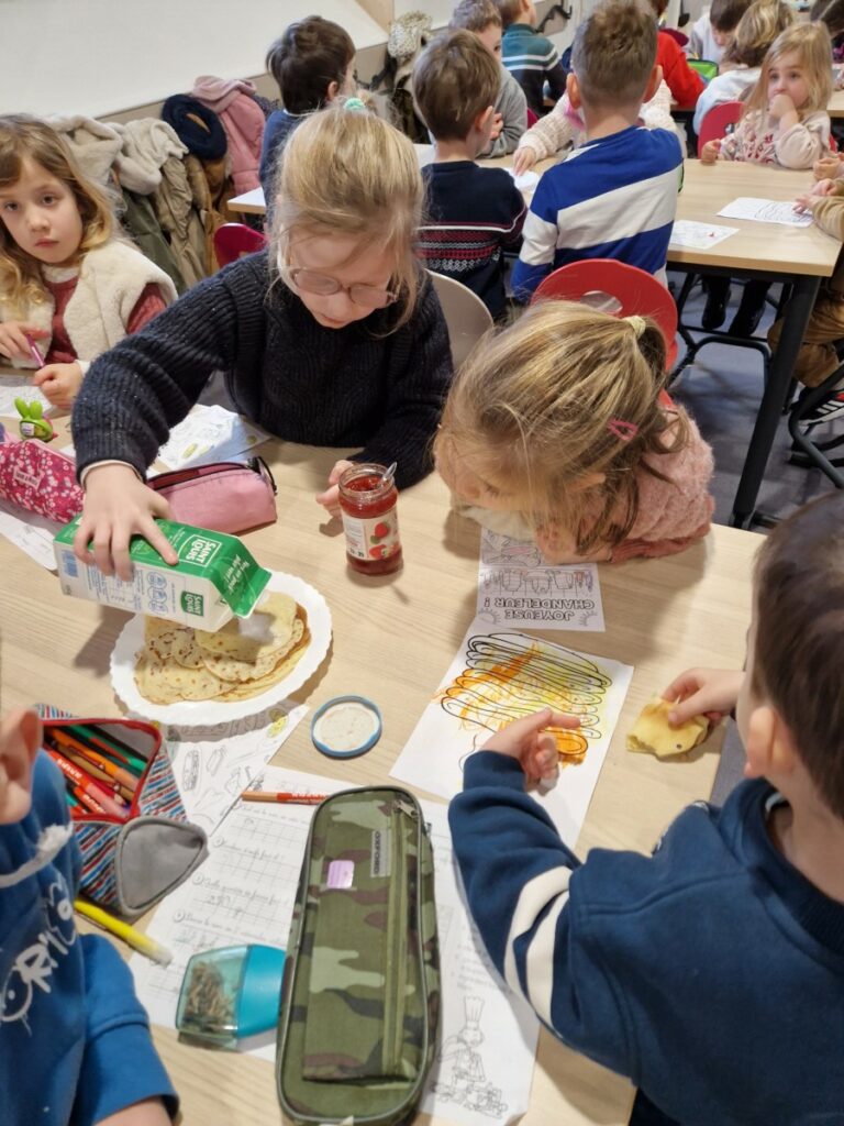 A l occasion des vacances de février, les élèves de Ce 1 B ont cuisiné des crêpes pour leurs filleuls de maternelle B. Ces derniers les ont rejoints dans la cantine pour une dégustation en musique. Un beau moment de partage entre grands et petits !
