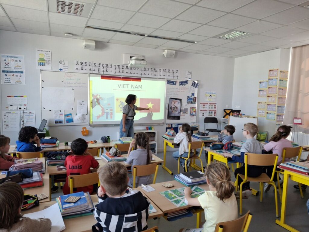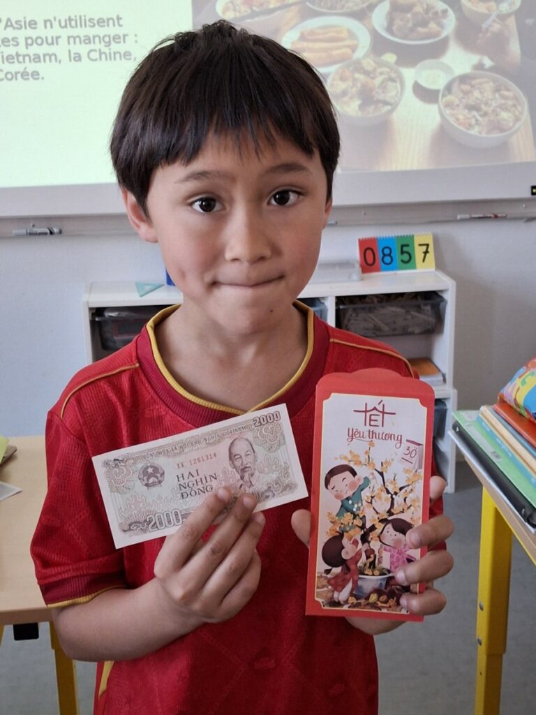 Louis et sa maman nous ont fait voyager dans leur pays d’origine : le Vietnam à travers quelques photos de leur voyage. Nous avons découvert quelques traditions, cadeaux, mots et la découverte de l’utilisation des baguettes.