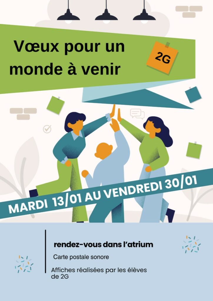 Les Ă©lĂšves de 2de G vous proposent de dĂ©couvrir leurs vĆux pour le monde de demain, Ă travers des cartes postales sonores Ă Ă©couter au CDI đđ.