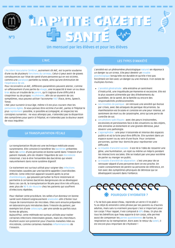 Une gazette claire et accessible pour mieux connaître des sujets de santé essentiels, de l’AVC à l’anxiété, en passant par les innovations médicales et les bons gestes du quotidien.